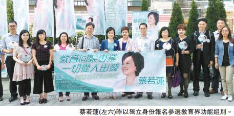 蔡若蓮報名競逐教育界議席