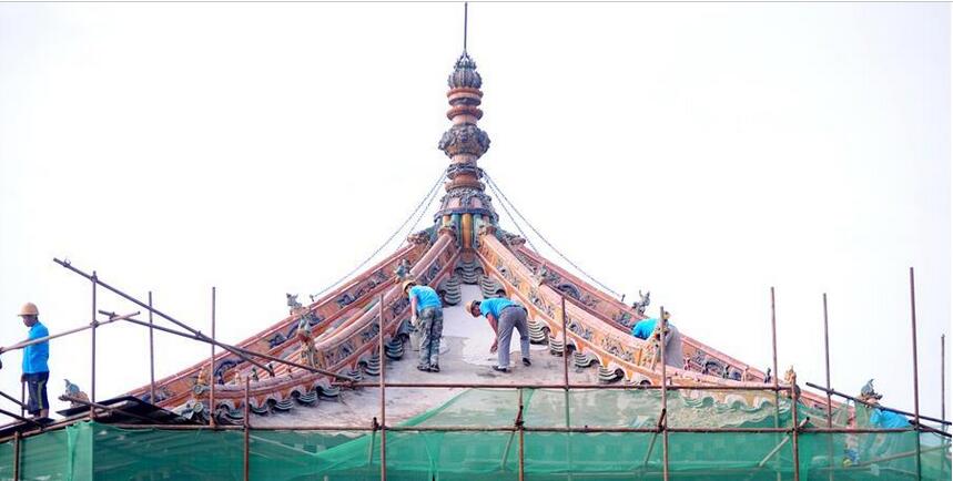 日前,沈陽故宮啟動大政殿、左翼王亭、鑲黃旗亭和正白旗亭等古建的修繕工程。據了解,此次修繕主要對古建的瓦頂、牆體等進行修繕,修繕按照修舊如舊的原則,預計9月下旬完工。