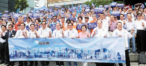 經民聯今屆派出7隊共12人參加立法會選舉,主席梁君彥表示,目前全球經濟「時暖時寒」,下調壓力大,認為香港應發展經濟、改善民生,令就業安定、社會向上流動。他批評,反對派議員不斷「拉布」、要求點人數,呼喚議員返回議事廳的鐘聲時常響起,令立法會無法做實事。他呼籲選民支持他們7位,讓理性、務實的聲音帶入議會,繼續監督政府,使香港向前邁進一步。