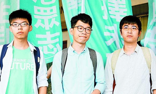 現任「香港眾志」秘書長黃之鋒、主席羅冠聰及前學聯秘書長周永康,被控前年9月26日,參與或煽動他人擅闖封閉的公民廣場,即政府總部前地,黃及周更攀爬3米高圍欄,一躍而下進入廣場。裁判官昨裁定,黃煽惑他人非法集會罪不成立,但另一項非法集會罪成;羅煽惑他人非法集會罪成;周則非法集會罪成。