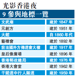 法國文化推廣辦公室早前獲盛事基金批出550萬元,將於11月18至20日在香港舉辦首屆「光·影·香港夜」。據介紹,活動概念來自法國里昂燈光節,主辦單位將邀請5位本地及4位外地藝術家,分別為9個地標設計投射表演。屆時將於9個位於中環及蘇豪區的歷史古蹟及地標,透過藝術家的立體光影投射、燈光藝術裝置、聲效及互動裝置,建構一個國際平臺,向本地及國際觀眾推廣并共同慶祝香港歷史及文化承傳。