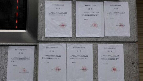 益陽系列司法腐敗案8名被告人在郴州市北湖區法院開庭,法院張貼出開庭公告。 澎湃新聞記者 譚君 圖