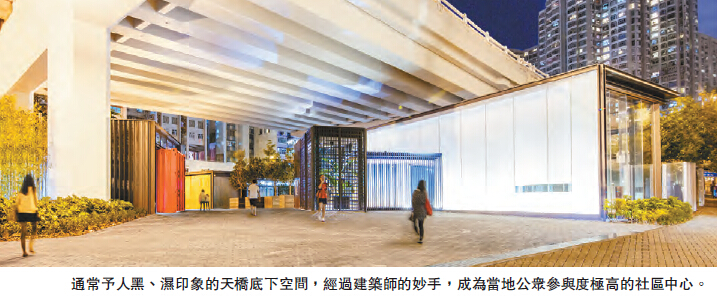 「很多人用貨櫃只不過是用它的特性,我們也用貨櫃,但是我覺得如果想上一個層面,從一個文化的視角考慮會很有幫助。」於是,在建築物的周遭,溫灼均種上很多竹子,「當做是一個屏風」。項目落成后,整個環境得以徹底改變,「原來黑漆漆、濕漉漉的地方,變得敞亮。周邊種很多樹木,一掃舊有的濕、黑的印象,亦都改變香港人對橋底的觀念。」