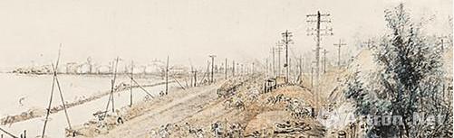 黎雄才 《武汉防汛图》(局部) 纸本设色 30.X279cm 1956