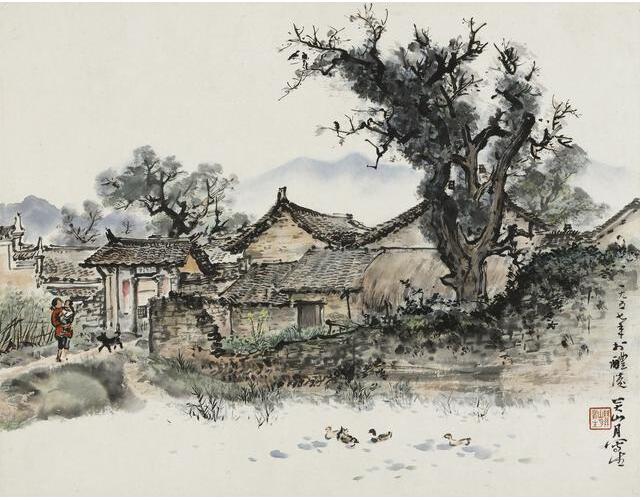 1957年春,關山月帶學生到湖南醴陵南橋鄉、南嶽衡山寫生60餘幅,此作為其中之一。畫面描繪了淳樸的鄉間小路以及具有特色的南方農村建築,依山造屋,傍水結村,四周植被豐茂、水源充足,和煦的南風吹過,一派青山環繞、秀水縈回的宜人環境。