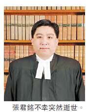 司法機構昨日發表聲明稱,裁判官張君銘博士於7月24日早上不幸去世,他於2009年加入司法機構,出任裁判官,去世前在九龍城裁判法院工作。終審法院首席法官馬道立對張君銘博士的離世感到十分惋惜,并向他的家人致以最深切的慰問。