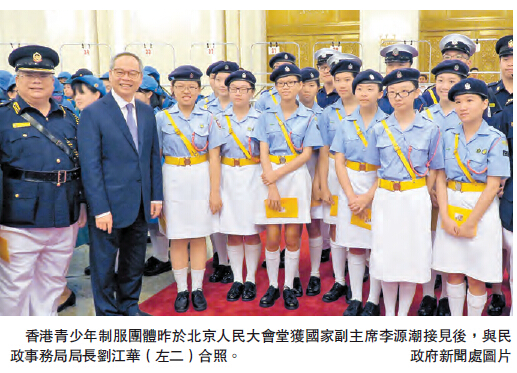 【香港商報網訊】記者萬家成報道:國家副主席李源潮昨日在北京會見了香港女童軍總會百年會慶暨制服團體「同心同根萬里行」交流團。李源潮表示,香港回歸19年的實踐證明,「一國兩制」和基本法得到了包括香港同胞在內的全國人民的普遍擁護和國際社會的廣泛讚譽,希望香港青少年繼承中華民族愛國傳統,從內心熱愛我們的國家和民族;全面準確理解「一國兩制」,積極維護香港繁榮穩定;把握時代機遇,奮力開創香港美好未來。