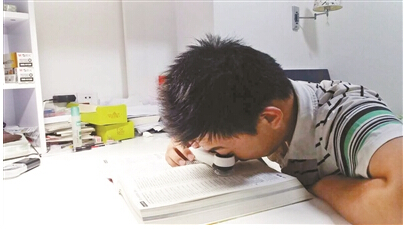 宋奕辰必須依靠放大鏡或助視器才能看清文字