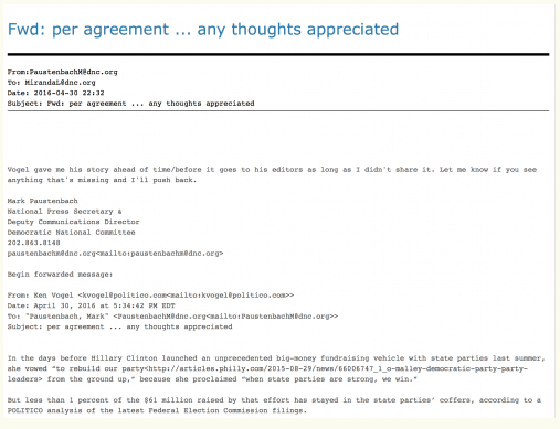 也有郵件顯示,美國政治新聞網(Politico)員工會先將新聞稿件發給希拉里過目,得到希拉里審核后才會上交給網站編輯進行發布。