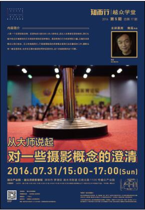 作為民辦非營利學術機構,越眾曆史影像館延續以往的慣例,於每月最後一個星期日下午三點至五點舉辦“知而行”越眾學堂。2016年,越眾學堂擬定幾個不同的主題方向,如曆史、影像、文化藝術管理和文產方向等,以輕松對話的形式,邀請海內外專家分享各自的觀點與經驗。
