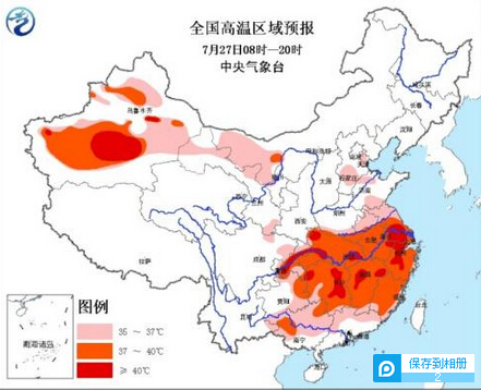 26日18时,中央气象台继续发布高温橙色预警。预计27日白天,华南北部、江南、江淮、江汉、黄淮南部、华北南部、四川盆地东部、重庆、贵州北部和东部以及新疆、甘肃西北部、内蒙古西部等地有35~39℃的高温天气。