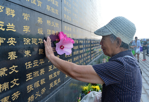 当日是河北唐山大地震40周年纪念日,市民来到唐山大地震纪念墙前,祭奠在1976年7月28日唐山大地震中遇难的亲人。