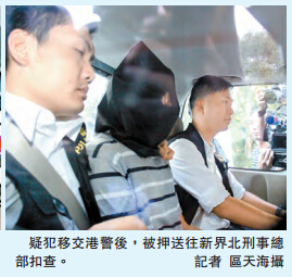 下午4时15分,疑犯由公安人员押解下,乘车到皇岗口岸落马洲大桥粤港分界线,由数名公安人员扣押下车,他们步行至香港警方面前,公安人员为疑犯解开手铐,他拿回个人物品包括一个背囊及绿色行李袋後,被押解步向3名香港警方人员面前。警员向疑犯警诫後,为其戴上手铐,押送上警车离开,过程约15分钟。