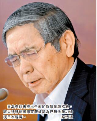 【香港商報綜合報道】日本央行昨日宣布,維持利率-0.1%不變,貨幣基礎年增幅目標維持在80萬億日圓(約6萬億港元)不變。日本央行并表示采取額外行動,擴大ETF購買規模至6萬億日圓(當前為3.3萬億日圓),將美元貸款計劃規模擴大一倍,至240億美元。相對市場預期,今次日本央行寬松規模較小,各方普遍認為該央行可能已彈盡糧絕。