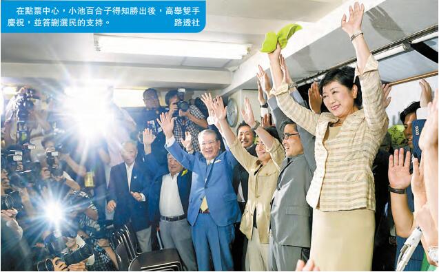 盡管正式計票尚在進行中,但根據主流媒體昨晚在投票站得出的調查顯示,64歲的小池百合子處於明顯優勢,其當選已成定局。據NHK報道,截至香港時間昨晚11時30分所得數據,小池已獲得超過289萬票,得票率達44.8%。而得票比較接近她的、由自民黨推薦出選的增田寬也僅得178萬票,得票率為27.6%。