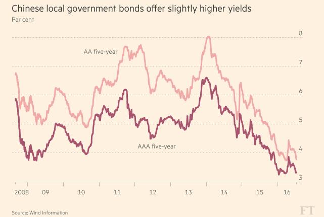 地方政府債券的收益率略高于中央政府債券,但地方政府以及它們旗下融資平臺是否獲得中央政府的隱性擔保,人們看法不一。