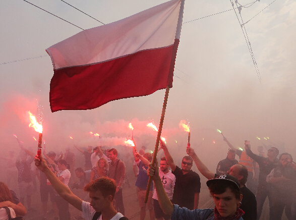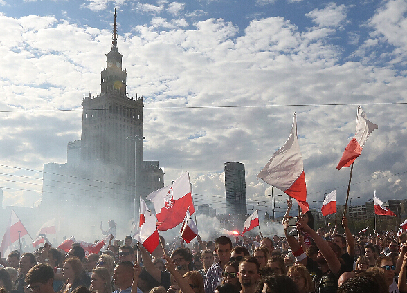 8月1日,人们聚集在波兰华沙街头,纪念华沙起义72周年。