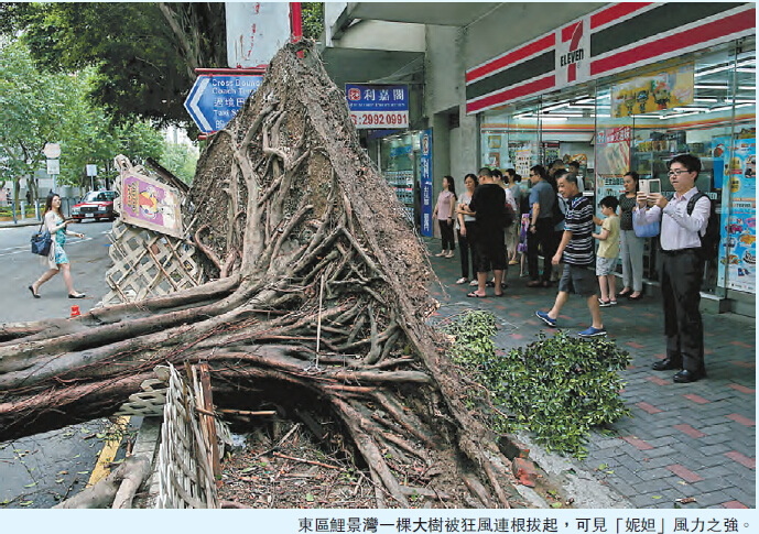 【香港商報網訊】記者區天海報道:強颱風「妮妲」昨日凌晨在本港以東40公里處掠過,並於深圳大鵬灣登陸,最高陣風時速高達133公里。因「妮妲」從本港東面登陸,受山勢所阻,減弱了破壞力。「妮妲」襲港20小時期間,當局共接獲403宗塌樹報告,部分低窪地區水浸,有數宗山泥傾瀉、冧招牌棚架等意外,令多條道路要臨時封閉。鯉魚門及大澳雖然出現海水倒灌,但多年改善的防洪設施發揮作用,昔日大水浸情況未有發生。風暴中有11男1女市民受傷求醫,262人要入住民政事務總署的臨時庇護所。整體上風暴未有為本港帶來嚴重破壞及人命傷亡,仍然「撐得住」,不由得再讚香港「真是福地」!