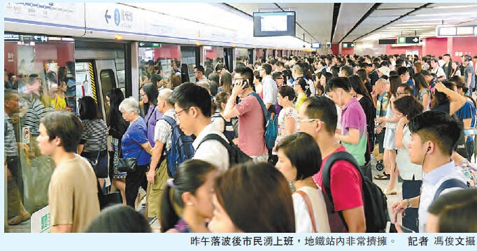 天文臺在昨日中午12時40分宣布改發3號風球,「落波」後市民陸續上班,其間在紅磡隧道口巴士站,市民紛紛轉乘隧道巴過海,3間巴士公司均加派人手在站內協助人潮登車,幸未見擠迫。另外在九龍塘港鐵站,亦有大批市民「急急腳」趕返工,現場所見雖然人頭湧湧,但秩序良好。