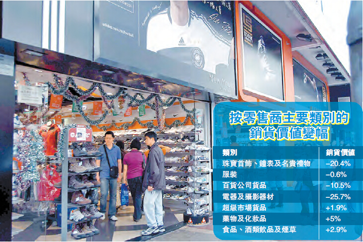 科法斯亞太區經濟師黃詠詩指,內地及美國經濟增長放緩,加上短期內無利好因素,預料本地零售跌勢將持續。她認為,雖然本港就業情況良好,但市民消費意欲偏低,加上訪港旅客數字下跌,相信零售行業前景黯淡。