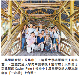 【香港商报网讯】香港中文大学(中大)姚连生建筑学教授吴恩融教授领导的「一专一村」团队,以可持续发展理念及现代力学知识,优化中国传统竹桥的设计及施工方案,在今年7月於重庆渝北区小五村建成中国第一座农村现代竹桥「一心桥」,解决当地贫困村民的过河困难。团队成员充分利用南方丰富的毛竹资源及其特点,优化传统民间竹桥设计,短短两个月便完成施工,为将来竹桥建设工业化起了重要的示范作用。