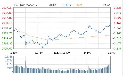 截至收盤,滬指漲0.13%報2982.43點,成交1533億元;深成指漲0.83%報10366.5點,成交2515億元。