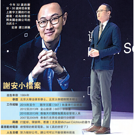 毁灭地球接近10次,但同时创造出铁甲奇侠等救世英雄,兼令过世歌后邓丽君「复活」,要人类来回地狱又折返人间的幕後黑手,就是荷里活首屈一指的视觉特效公司数字王国(547)。其实,这间公司曾面临破产边缘,现年32岁台湾青年谢安当时冒险做白武士雪中送炭。对於这个挑战,谢安凭「遇到困难就去接受它」的逆来顺受心态,最终登上这个「王国」的CEO宝座,成为「救国」英雄。