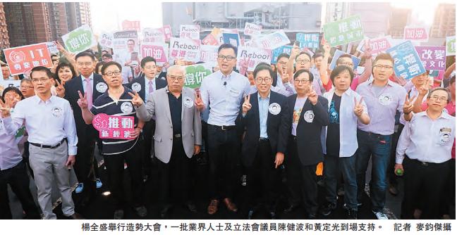 【香港商報网訊】實習記者王詩婷報道:立法會選舉在即,各路人馬馬不停蹄展開活動。其中資訊科技界候選人楊全盛昨晚舉行造勢大會,獲多名重量級人馬站台,包括自動當選今屆立法會保險界議席的陳健波、民建聯黃定光、荔園主席、香港資訊科技聯會(ITJC)會長邱達根為他站台。陳健波批抨,競逐連任資訊科技界莫乃光是政治凌駕於業界,漠視業界的訴求;黃定光更抨擊莫乃光是反智:「在成立創科局上濚度刁難、拉布、濚度搞澫。」