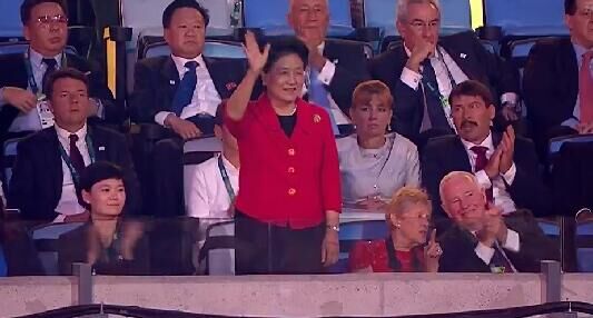 中國代表團第45個入場,雷聲高舉並且揮舞著國旗大步向前。國務院副總理劉延東作為習近平主席特別代表出席,她向中國代表團揮手致意。