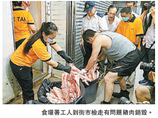 早前有内地供港猪验出有哮喘药,部分猪肉流入零售点,上环街市猪肉档接到食环署通知,早上11时半左右会到场将大约1000公斤猪肉销毁。不过,肉档负责人黎汉源表示,过去2年没向五丰行入货,现时向另一间没涉事的广南行入货,批评五丰屠房和食环署出错,指他们的猪肉有问题。他续说,曾经联络食环署反映,但对方表示相信五丰屠房提供的文书纪录,已有5间酒店因事件暂停向他们购买猪肉,估计损失约2万至3万元,占平日营业额约三成。