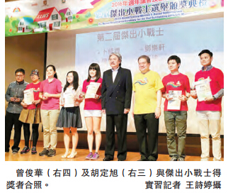 「生命小战士会」昨日举行第2届杰出小战士选举颁奖典礼,今年共有7人获封为杰出小战士。财政司司长曾俊华在致辞时表示,政府关心市民的健康,所以不但今个年度医疗服务的经常开支,比起10年前增加90%,而且在今年的《财政预算案》中预留了2000亿元,用作10年医院发展计划。他勉励得奖的小战士,要继续勇敢面对人生,因为困难每个人都会遇到,但是身边还有很多人支持,并不是孤军作战。