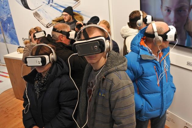 用戶使用VR設備觀看2016年利勒哈默爾冬季青奧會開幕式。科技向體育行業的滲透,正帶來新的玩法。