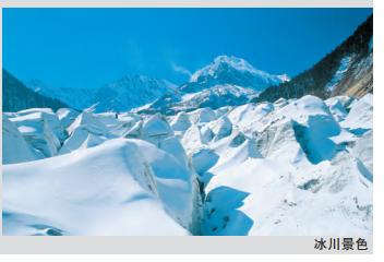 海螺溝冰川活動性最強,在冰川運動中,形成晶瑩的冰川弧拱、冰洞、冰階梯、冰門、冰湖、冰峰。海螺溝有「一溝有四季,十里不同天」的氣候特徵,冬暖夏涼,雲霧多日照少,年降水量2000毫米,不受氣候和景觀條件的限制,是理想的旅游、度假、療養、登山、科考、探險的好去處。