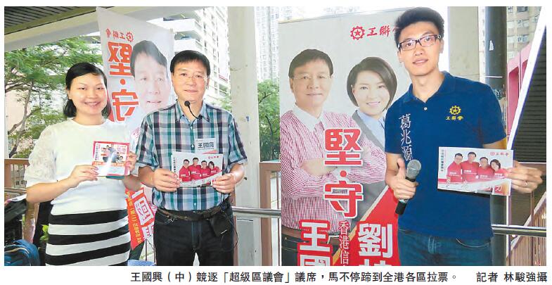 王国兴形容选战具挑战,希望有逾40万会员的工联会能发挥「工联会效应」;今次「超级区议会」界别共有9张名单,竞逐5个议席,反对派占6张。他坦言不认为形势会令建制派占优,最希望能将支持工联会的选民「箍实」,「希望投票支持娴姐的选民,也能投票支持自己」。