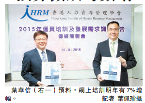 叶华信表示,人力资源管理学会估计网上培训模式会继续在明年维持,预期会录得7%增幅。他又表示,乐见雇主重视人力资源方面投资,以增强竞争力,重申提升雇员能力及素质仍是香港企业赖以持续发展及保持竞争优势的重要策略。