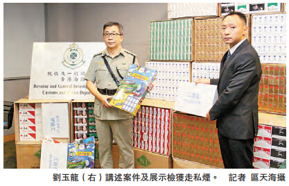 根据《进出口条例》,走私属严重罪行,违例者最高可判罚款200万元及监禁7年。市民如发现怀疑私烟活动,可致电24小时热线25456182举报。