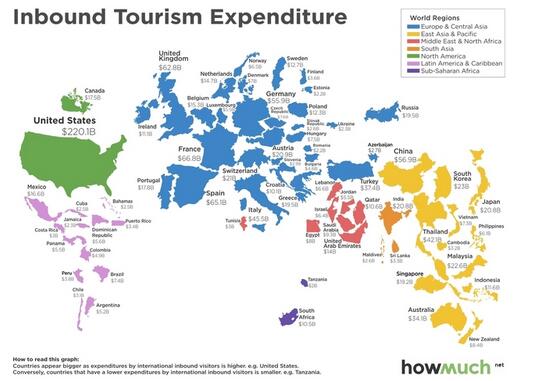 另一方面,在吸引國外游客消費的比拼中,美國遙遙領先,其入境游消費達2201億美元,是第二名法國這類消費的三倍多,法國的入境游消費額為668億美元,中國以569億美元排名第五。