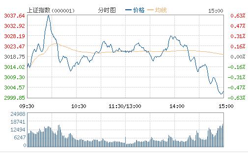 截至收盤,滬指跌0.53%報3002.64點,深成指跌1.14%報10391點;盤面上,券商、保險等少數板塊上漲,有色、煤炭、軍工、軟件服務等板塊領跌。