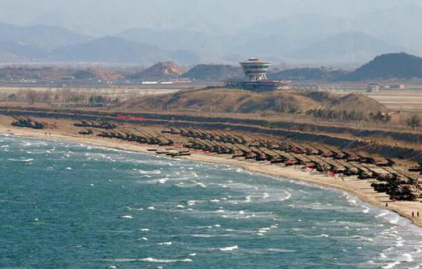 朝鲜在海边举行军演。