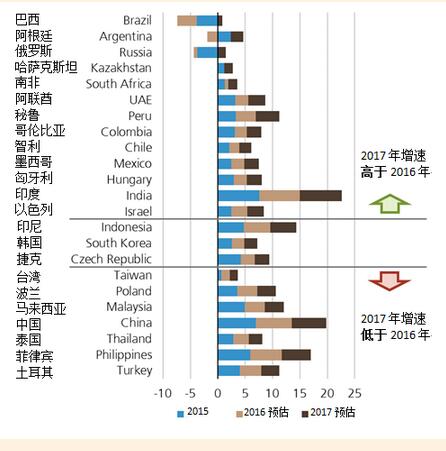 2015年,新興市場經濟增長率僅比發達國家高出3個百分點,而2009年時尚有6個百分點的差距。但是未來幾年新興市場的增長優勢很可能再現,尤其是考慮到巴西和俄羅斯經濟在深度衰退后將企穩。而亞洲和歐洲新興經濟體的采購經理指數(PMI)都已重返榮枯分界線50之上。