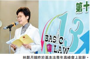 林鄭月娥昨日出席「基本法青年高峰會」致辭時表示,《基本法》說明香港有高度自治、獨立的司法權和終審權。《基本法》內容說明香港司法獨立機制非常穩固,司法機關不會受到行政機關、傳媒和市民影響,並且獨立和彰顯公義。