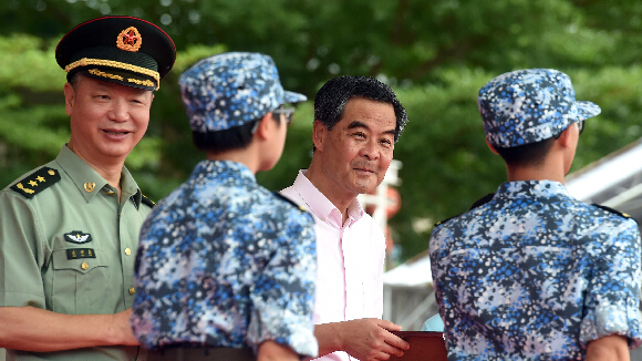 梁振英在致辞时,祝贺同学完成13天的严格训练,学习了军人保疆卫国的精神。他表示,古今中外,国家都是人类的最大集体,国家和国民是命运共同体,国家有必要代表和维护国民的安全和利益,国家越强大,国民的安全和利益就越得到保障,国民在国际间的地位就越高,所以每一个国家的国民都有维护国家主权和领土完整、维护国家安全和利益的义务。