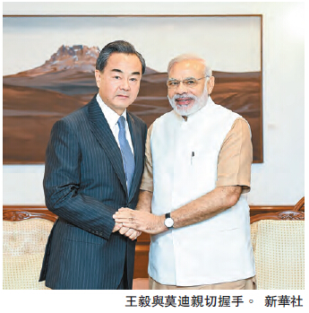 關於中印關系,王毅表示,雙方一致認為,莫迪新政府成立兩年多來,在多年積累的成果基礎上,兩國關系在各個領域都取得了全方位進展。盡管全球需求下降,兩國貿易仍然保持增長勢頭,中國對印投資成倍增長,鐵路合作、工業園區建設有序進行。教育、青年、旅游、體育等人文活動也在豐富多彩地開展。雙方還就共同應對氣候變化、加強國際反恐合作等全球問題保持著協調合作。應該說,中印對雙邊關系總體進展都感到滿意,認為主流是非常好的。