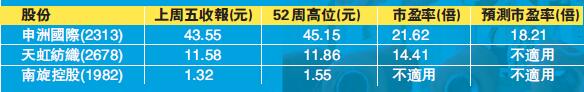 剛出爐的中國7月一系列經濟數據疲軟,再次證明了目前內地經濟正在放緩。然而,如此背景下,內地消費者對衣服的喜愛似乎有增無減。中期業績期間,紡織股一度閃亮登場,股價相繼迎來一波升浪,當中可關注申洲國際(2313)、天虹紡織(2678)與南旋控股(1982)。
