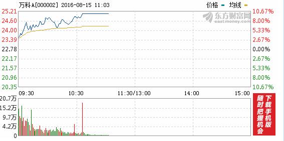 万科A午后持续拉升强势涨停 成交近80亿