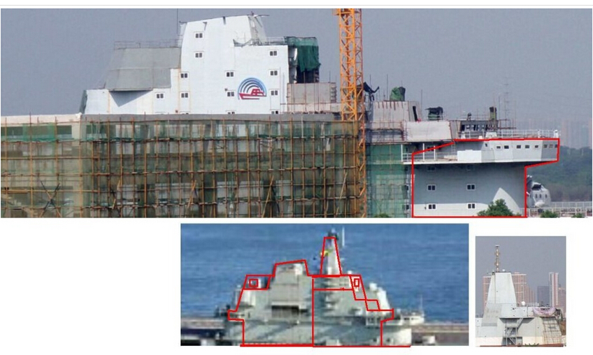【香港商报网讯】内地各大军事论坛昨日有消息称,近日有网友在武汉附近拍摄到疑似国产002航母舰岛建筑的图片,图中显示该建筑与辽宁号航母及此前中国陆地航母的舰岛有相似之处,但又有很多区别,该建筑舰岛上层被剖开,改动幅度大。