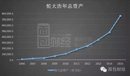 下圖是面包財經根據財報數據繪制的恒大總資產變動圖: