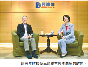 全国政协常委唐英年昨日到民建联总部出席对谈会,接受民建联主席李慧访问,畅谈本港形势。唐英年坦言,如果本港继续在「港独」议题纠缠下去,对本港的经济发展、社会发展肯定会有很大的负面打击。他也诧异这个伪议题,可以在香港如此被炒热,慨叹「完全是浪费时间」。他也反对在学校讨论「港独」议题,直言学校应该正确引导学生求学,以增长知识,而不应讨论违反伦理的议题。