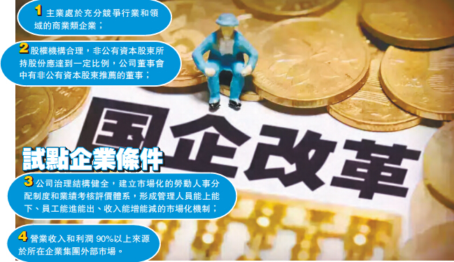 《意见》明确,此次试点级别在央企三级及以下处於充分竞争领域的商业类企业,遵守「以岗定股、动态调整」的原则,主要采取增资扩股、出资新设方式开展员工持股,员工入股应主要以货币出资,入股价格不得低於经核准或备案的每股净资产评估值等。年内启动实施首批试点,成熟一户开展一户,2018年年底视情况适时扩大试点。