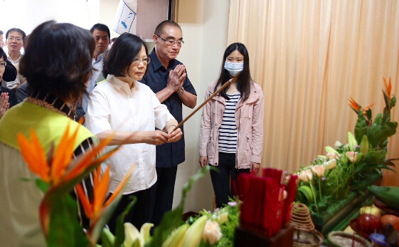 蔡英文18日到高雄市立殡仪馆张志伟灵前致意并慰问家属。“中央社”